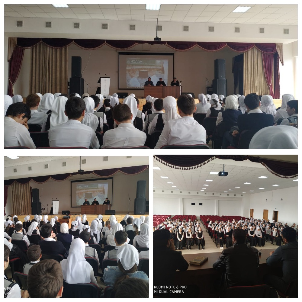 15.02.2020Сегодня в актовом зале состоялась встреча учащихся с представителями духовенства : Мазаев И. Б., Зайтаев А. А. «Ислам поощряет приобретение знаний, чтение, получение образования. Проявляйте благой нрав, терпимость, милосердие, совершайте благие поступки », – призывал Ислам Балаудинович в своем выступлении. В ходе встречи представитель духовенства отметил, что Ислам является религией добра и мира, и всегда призывает к уважительному отношению к родителям, к учителям, к тем, кто дает знания.