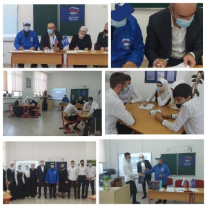 04.11.2020«РосКвиз» - это серия командных интеллектуальных игр, проведение которых приурочено к значимым Всероссийским датам (День России, День Государственного флага Российской Федерации, День народного единства, День Конституции Российской Федерации и т.д.). Целью проведения игр является развитие новых досуговых форм работы, популяризация культурно-содержательного, интеллектуально-обогащённого досуга. 4 Ноября в школе была проведена викторина , приуроченная ко Дню народного Единства. Гостями и жюри были: представитель партии "Единая Россия "в Серноводском районе Белдуров Б. А. и Председатель Совета депутатов Серноводского муниципального района Ногаев А.З.