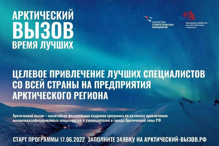 20.07.2022Стартовал прием заявок на участие в самой масштабной федеральной программе по привлечению высококвалифицированных кадров в инновационные проекты арктической зоны – «Арктический вызов».