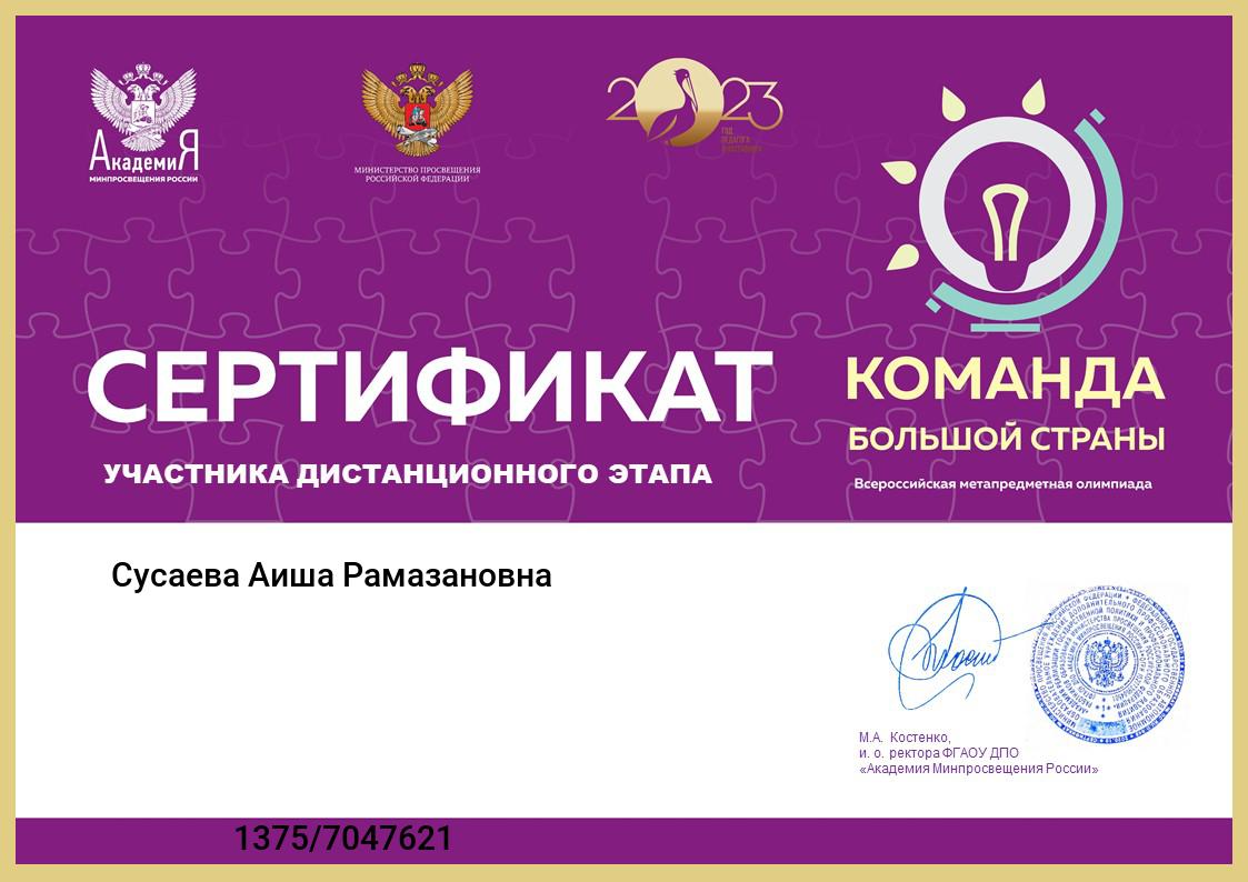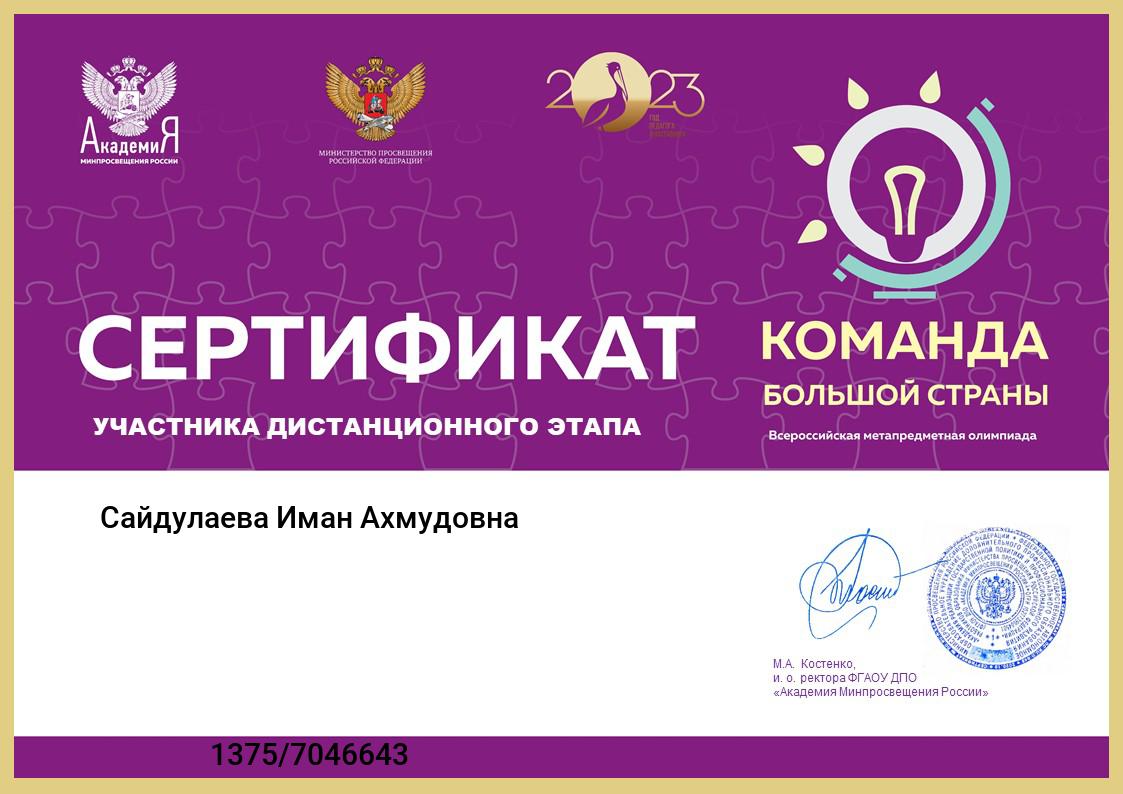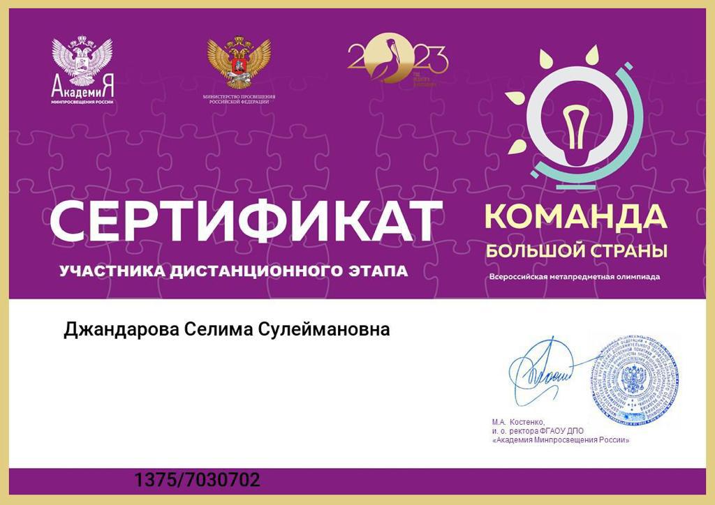 (метапредметная олимпиада) проводимой ФГАОУ «Академия Минпросвещения России".