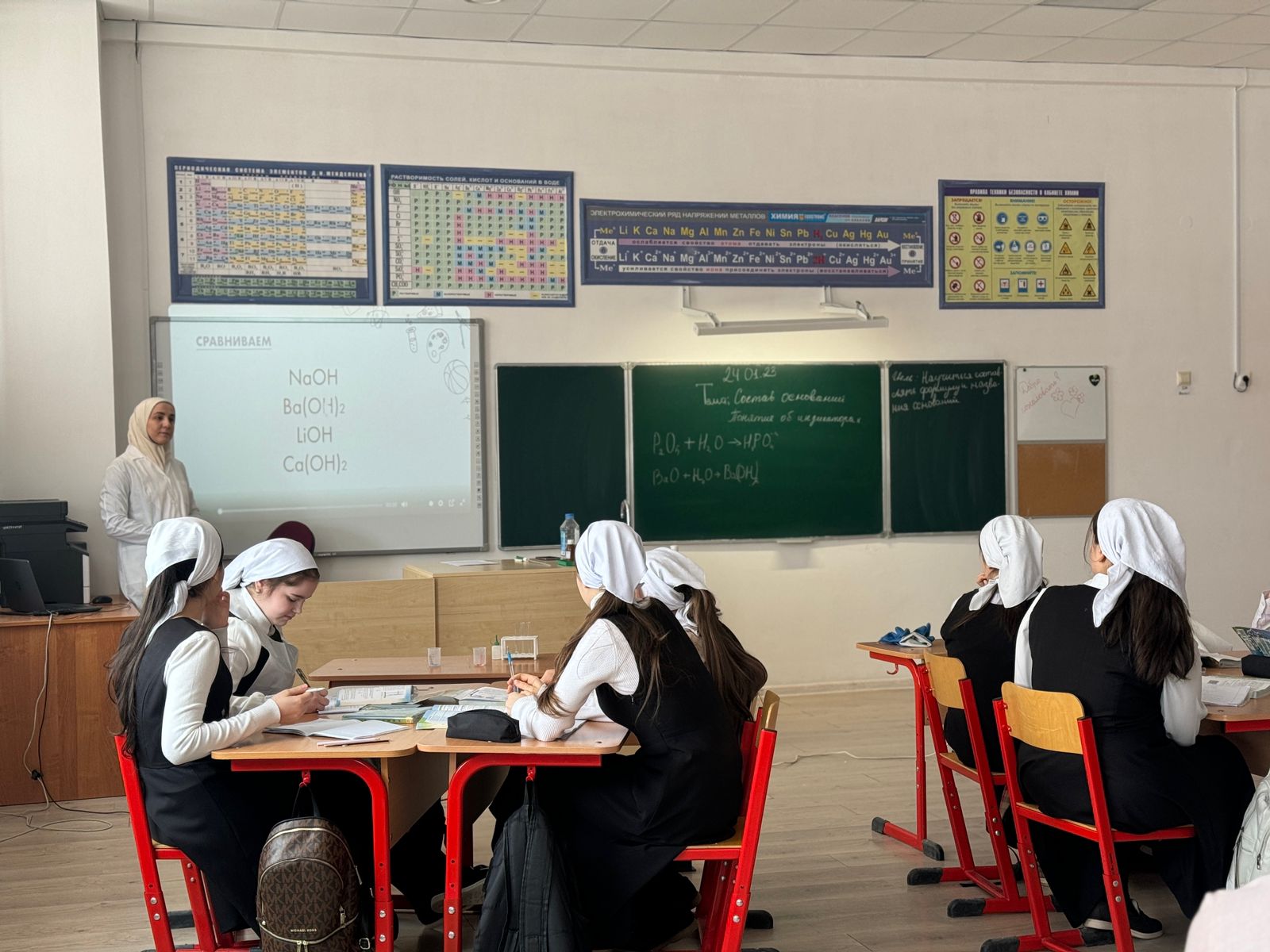 23 января в МБОУ "СОШ №1 с. Серноводское" учителем химии Табуркаевой Маккой Хусаиновной проведен открытый урок в 8 классе по теме: "Состав оснований.