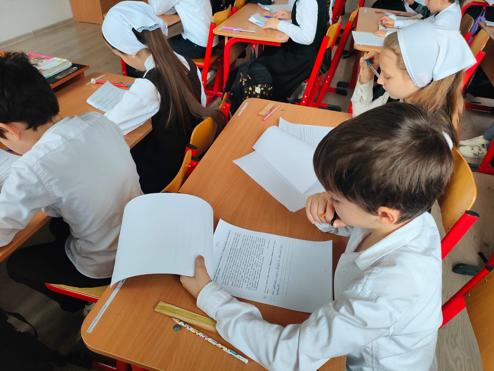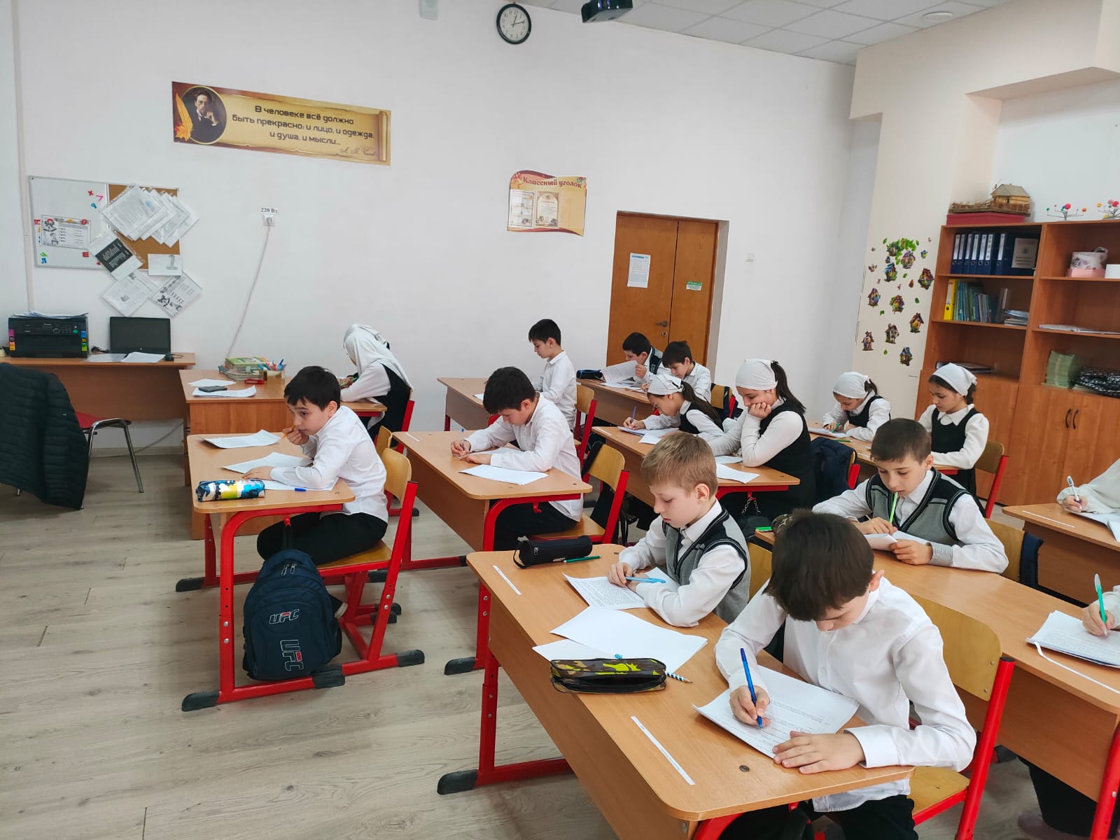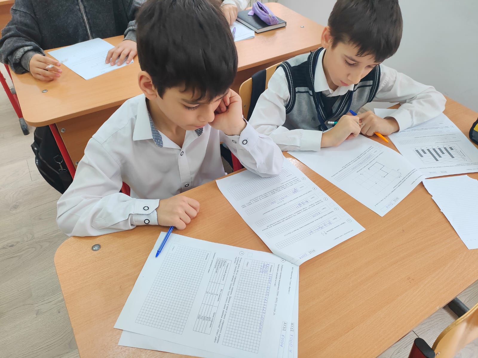 Обучающиеся 5-х классов выполняют работу по математике.