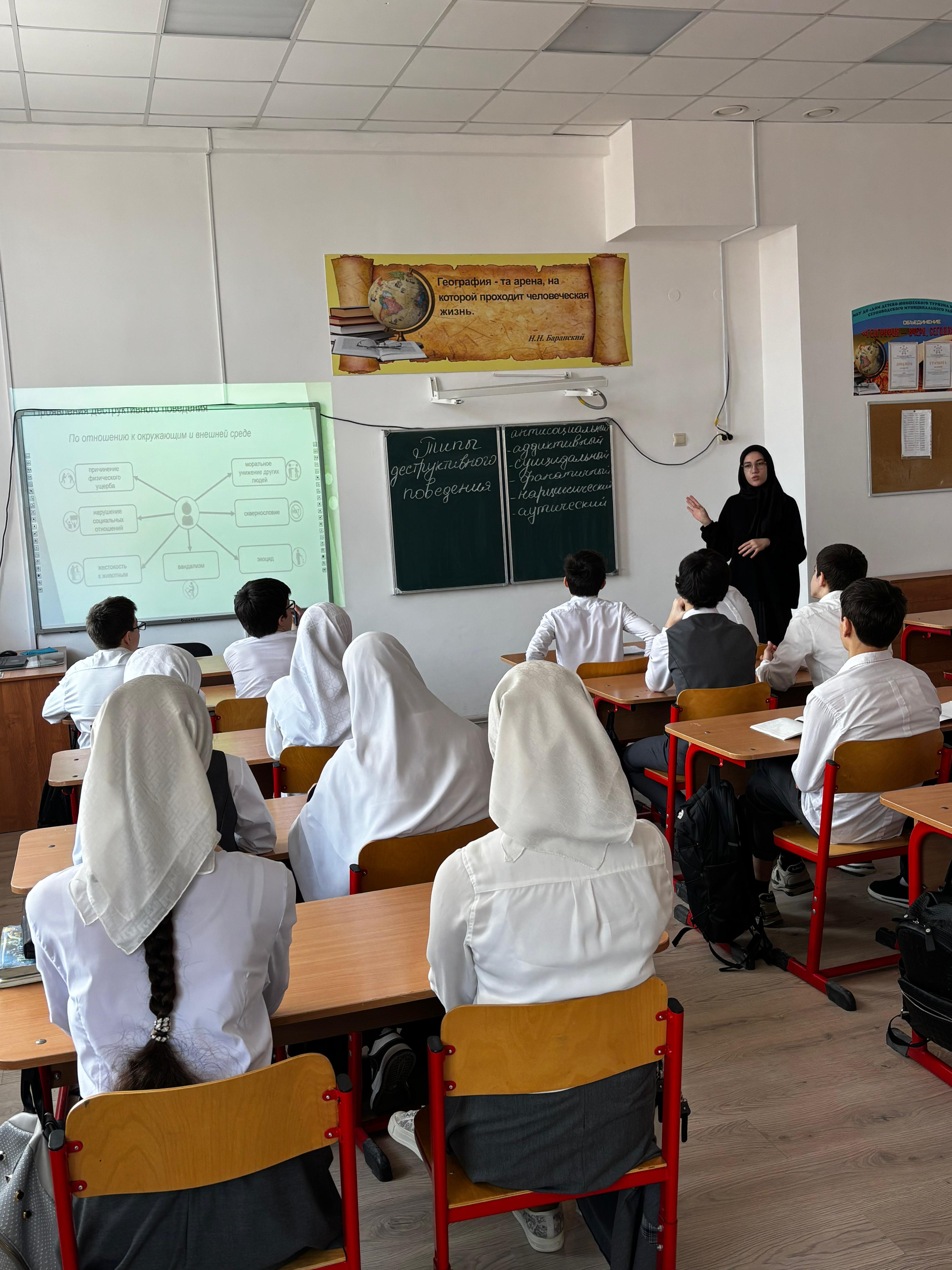 В МБОУ «СОШ 1 с .Серноводское» педагогом-психологом была проведена беседа на тему «Особенности адаптации иностранных граждан в школе». Целью психолого-педагогического сопровождения процесса социально- психологической адаптации детей к новой социокультурной среде является эффективная социально-психологическая адаптация детей из семей мигрантов к российской социокультурной среде; развитие у детей социальной компетентности и толерантности. Психолого-педагогическое сопровождение ребенка, в том числе ребенка из семьи мигрантов — это система профессиональной деятельности психолога, направленной на создание социально-психологических условий для успешного обучения и психологического развития ребенка в ситуациях взаимодействия.