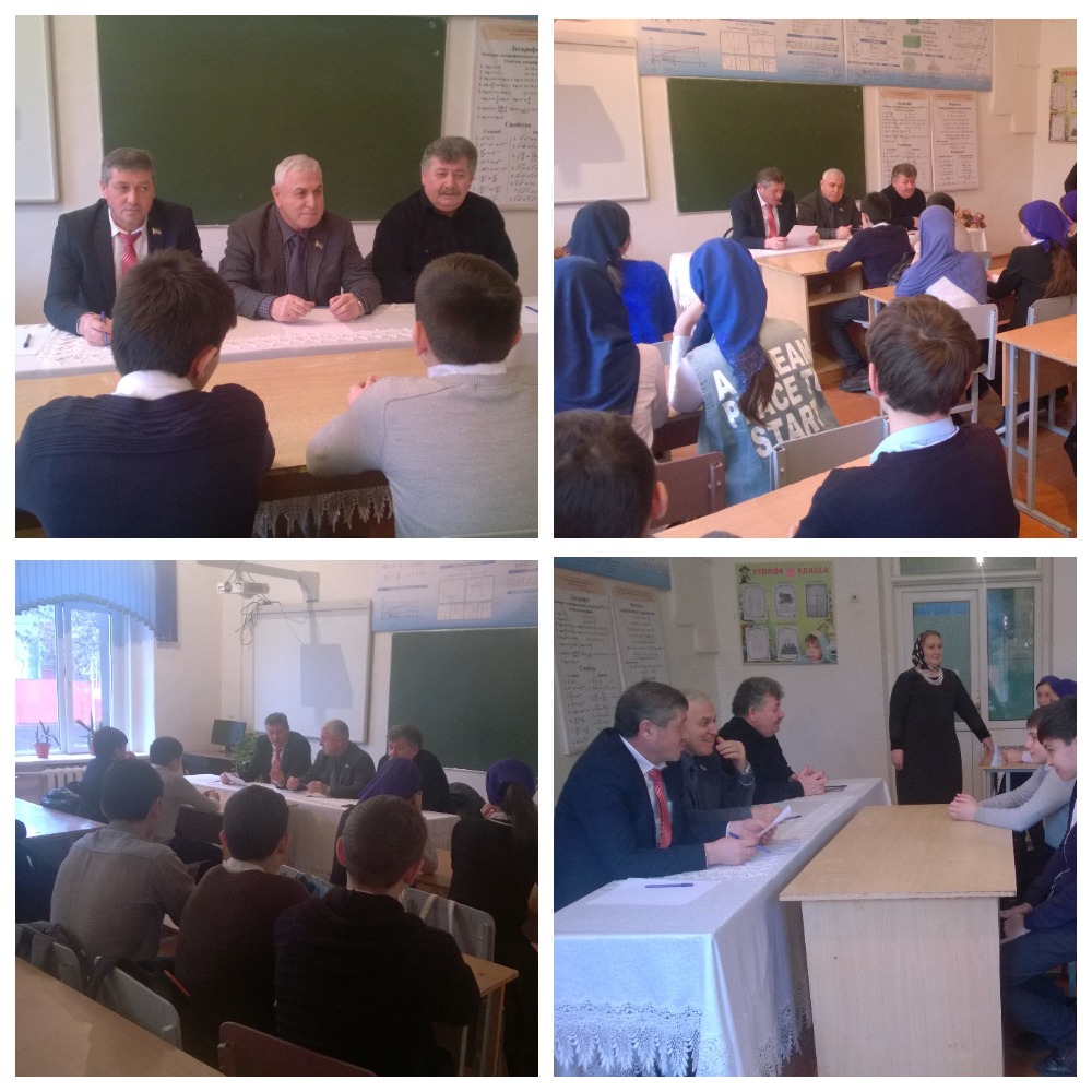 31.01.2018Депутаты Парламента ЧР Таймасханов Х.С., Накаев Х. М. и глава сельского поселения Арсамаков В. провели разъяснительную беседу с учащимися МБОУ "СОШ №1 с.Серноводское" Сунженского муниципального района.