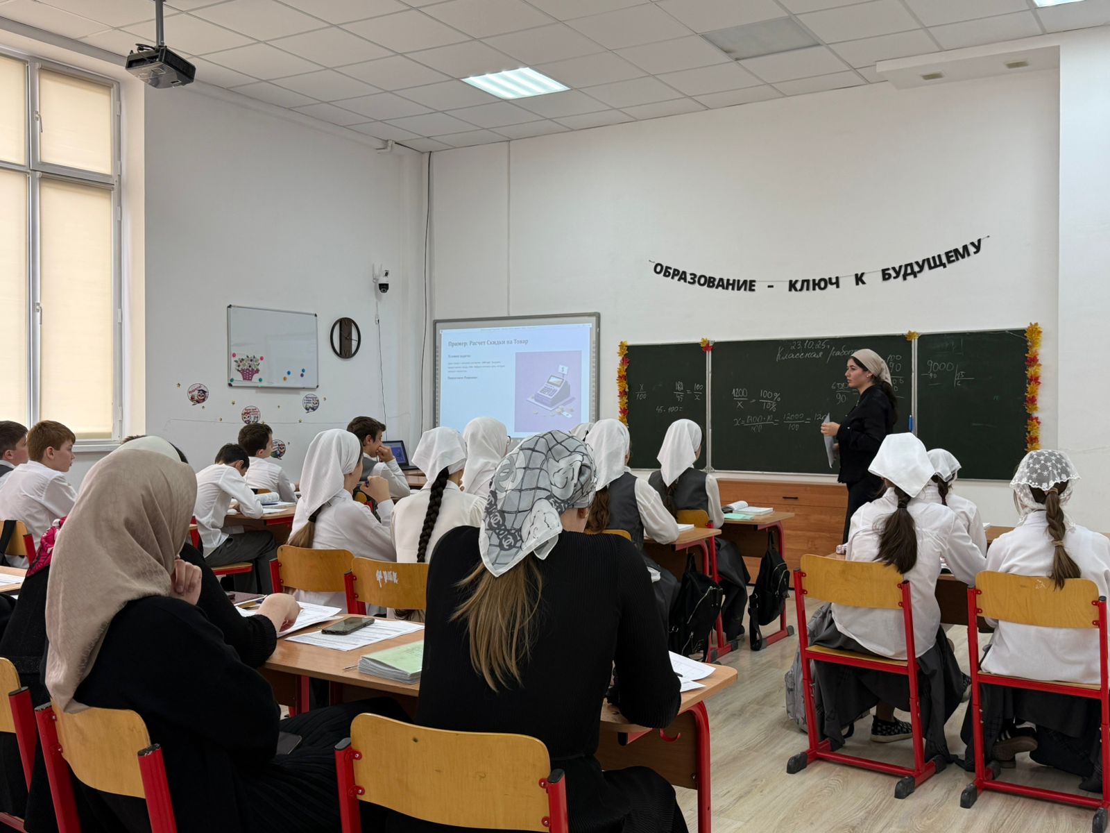 23.10.2025В рамках реализации национального проекта "Молодежь и дети" федерального проекта "Педагоги и наставники" состоялся открытый урок в 7 классе по теме " Решение текстовых задач на дроби, проценты из реальной практики" Элькиевой Миланы Муслимовны, учителя математики. Главная цель открытых уроков - создание условий для развития профессиональных компетенций молодых педагогов, самоопределения и профессиональной ориентации, раскрытии потенционала личности наставляемого, необходимого для успешной личной и профессиональной самореализации в современных условиях. Дала т1аьхье беркате йойла!